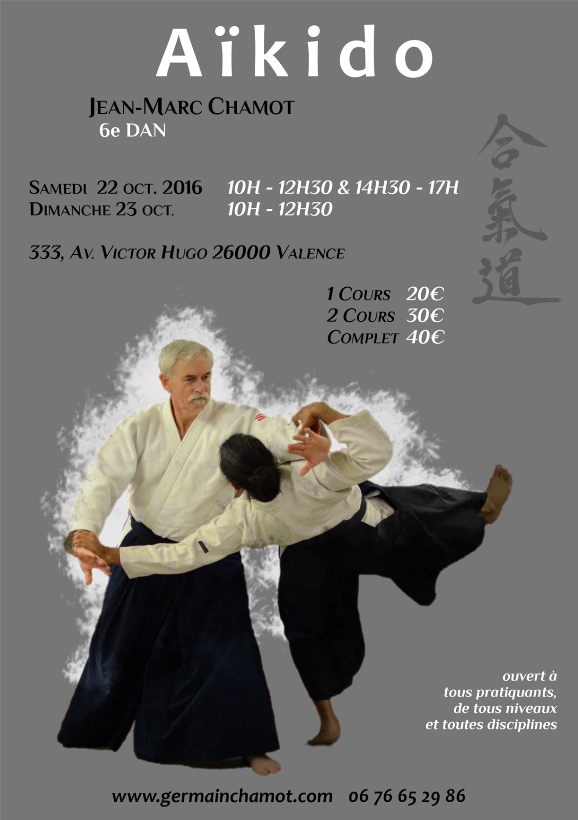 Les 22 & 23 octobre mon père, Jean-Marc-Chamot, animera pour la seconde fois un stage d’Aïkido à Valence.