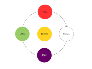 Comme nous le rappelle le motif du Taijitu, le yin et le yang sont complémentaires et il existe toujours de l’un dans l’autre. En détaillant ledit symbole on s’aperçoit également que l’un est à son maximum lorsque l’autre est à son minimum. La théorie des cinq éléments, ou cinq transformations, détaille le passage du yin extrême au yang extrême en s’appuyant sur le cycle des saisons. Le moment le plus yin de l’année correspond donc à l’hiver, période de repli sur soi ou d’hibernation (élément Eau) ; vient ensuite le réveil du yang avec le printemps, période d’extériorisation (élément Bois) ; arrive alors le moment le plus yang de l’année : l’été (élément Feu) et s’ensuit l’automne (élément Métal), puis l’hiver à nouveau. Le cinquième et dernier élément de ce cycle est symbolisé par la Terre que l’on place alternativement au centre (comme un pivot autour duquel les saisons s’articulent) ou entre le Feu et le Métal afin de l’inclure dans les cycles d’engendrement et de contrôle (l’Eau donne naissance au Bois, le Feu fait fondre le Métal, etc.).