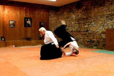 En Aïkido, c’est encore différent. Le contact est facultatif ou seulement ponctuel. On pourrait imaginer des échanges avec les Karatekas, mais encore une fois, chaque discipline a ses propres spécificités ou orientations éthiques et elles n’ont pas pour objectif ultime de rivaliser entre elles… Toutefois j’avais trouvé des corrélations plus évidentes entre l’Aïkido et le Karaté Shotokaï qu’avec le Shotokan.