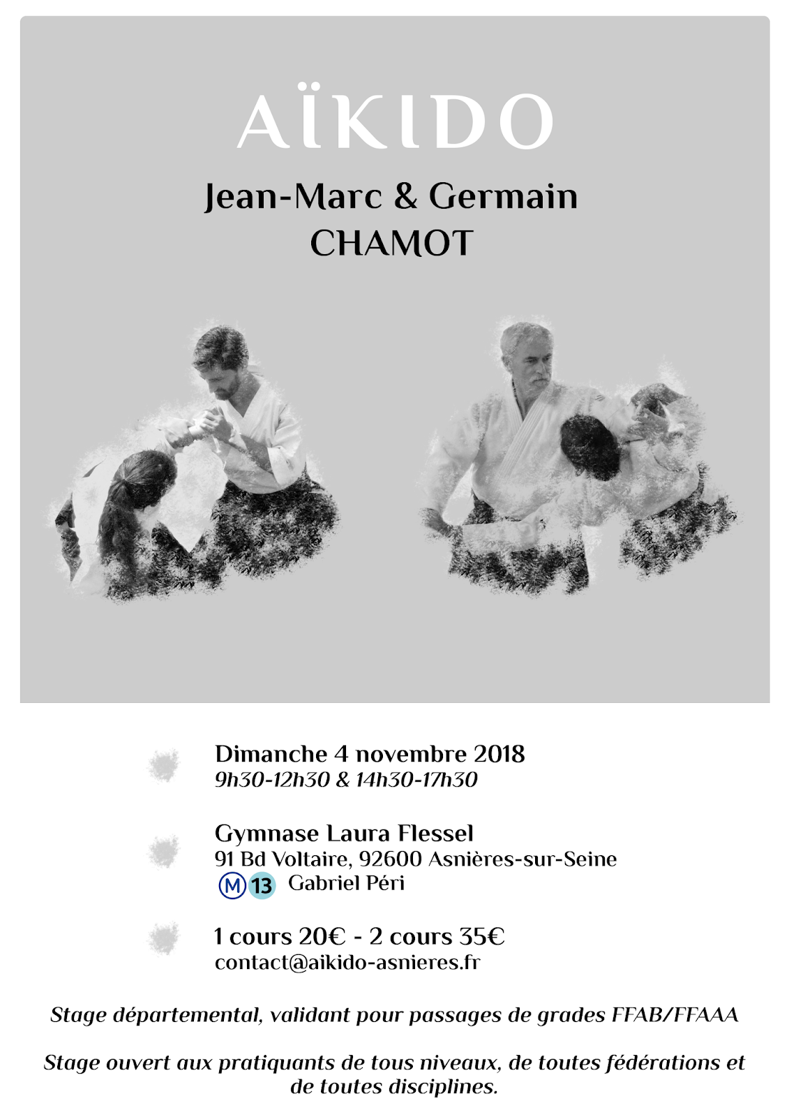 Le dimanche 4 novembre, mon père et moi animerons un stage à Asnières-sur-seine (92).