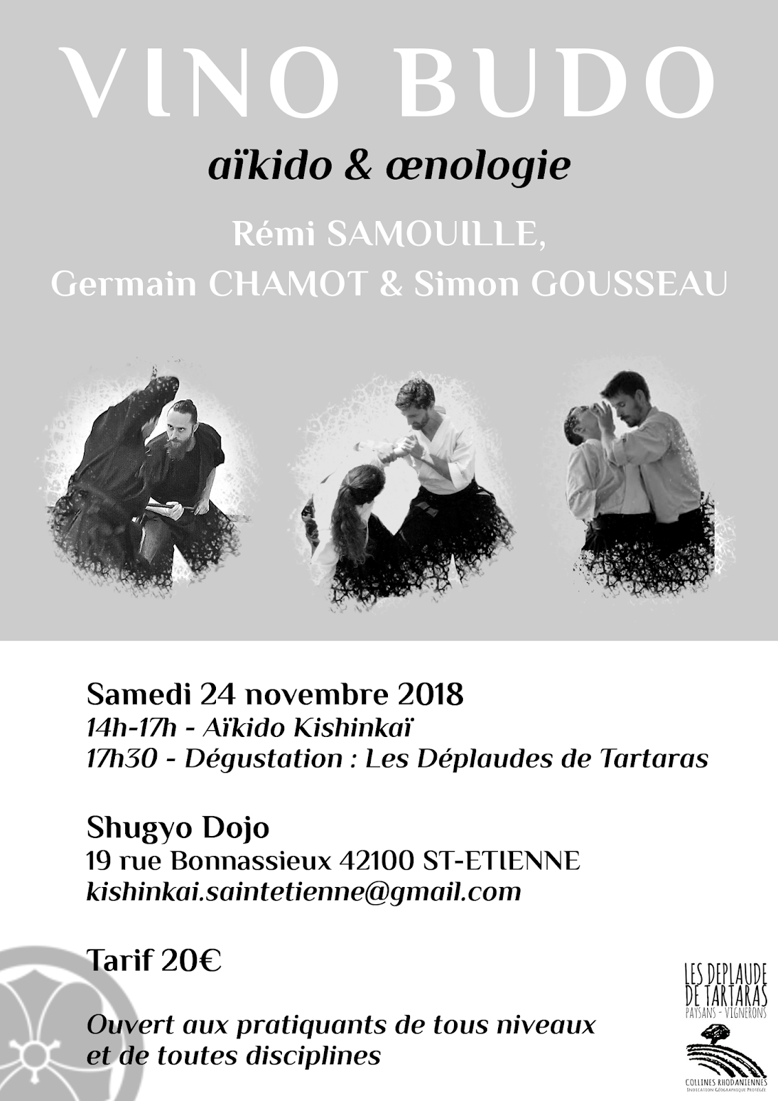 Le samedi 24 novembre 2018 les trois enseignants du Kishinkaï Aïkido en Rhône-Alpes se réuniront pour animer un stage inédit : Aïkido et dégustation de vin !