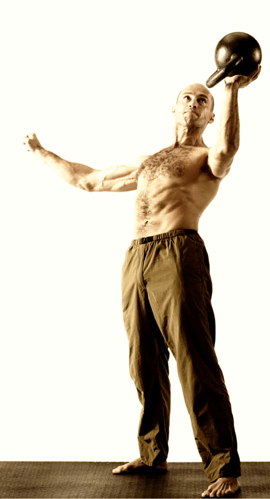Faisons à ce propos une expérience : Tenez-vous debout, votre bras droit tendu dans l’alignement de votre ligne d’épaule (votre main droite est alors au plus loin possible de votre épaule gauche). Demandez à un partenaire de vous empêcher de ramener cette main, bras tendu, devant votre sternum. Testons deux méthodes différentes maintenant : Essayez de ramener cette main sans tourner les épaules ou les hanches vers votre partenaire. On prend dans cette situation assez rapidement conscience des limitations de nos pectoraux… Tentez maintenant de tourner vos hanches vers votre partenaire. Vous avez maintenant la main devant votre sternum. Bloquez cette position dans le haut du corps en contractant muscles abdominaux, pectoraux et dorsaux et ramenez votre buste dans sa position initiale en tournant sur le bol du pied. Ramener votre main a sans doute été beaucoup plus simple dans ce cas que dans le premier !